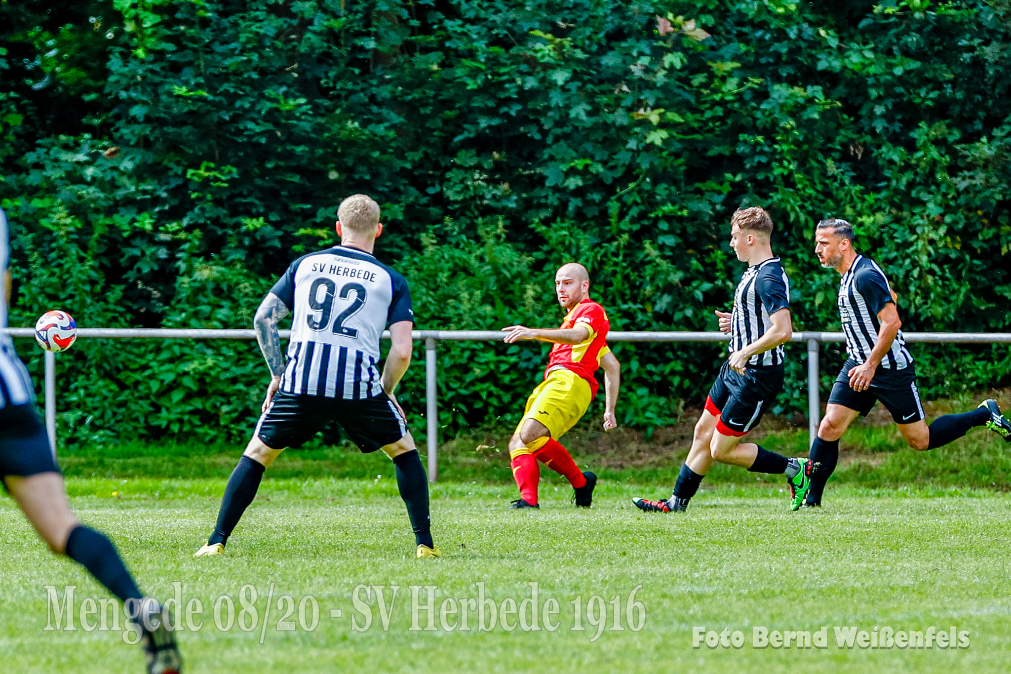 Saison 23/24, Bezirksliga Staffel 10.- 1. Spieltag und wir empfangen im Volksgarten die Elf von SV Herbede. Genug mit der Vorbereitung, heute galt es möglichst fit auf den Punkt zu sein. Unser Trainerteam geht mit einem stark verjüngten Kader in die neue Saison. Am heutigen Tag ist der Kader ziemlich komplett, es fehlen aktuell noch Yazan Alabar, Ritchie Kuck, Ozan Bektas (Urlaub) sowie die leider noch verletzten Fabian Ostermann und Rocco Dieckmann. Auch der frisch vermählte Mattes Schmidt war heute mit an Bord, trotz seiner Hochzeit letzten Freitag liess er es sich nicht nehmen, und um es vorweg zu nehmen, er lieferte eine starke Partie ab. Auch wollen wir nachträglich unseren Coach Christoph Schulz und seiner Ehefrau Gratulieren. Alles Gute für Ihre gemeinsame Zukunft!! Auf gehts, Anpfiff des Spiels! Die erste gute Torchance gab es in Spielminute 12. als Massimo Weil nach einer schönen Aktion aus halblinker Position aus 20 Meter zum Abschluss kommt, leider klatscht sein Schuss nur gegen den Pfosten, und auch den Abpraller konnte Lucas K. (Kiki) nicht im Tor unterbringen, er war vermutlich auch etwas überrascht und traf die Pocke nicht optimal und so ging der Nachschuss übers Tor.