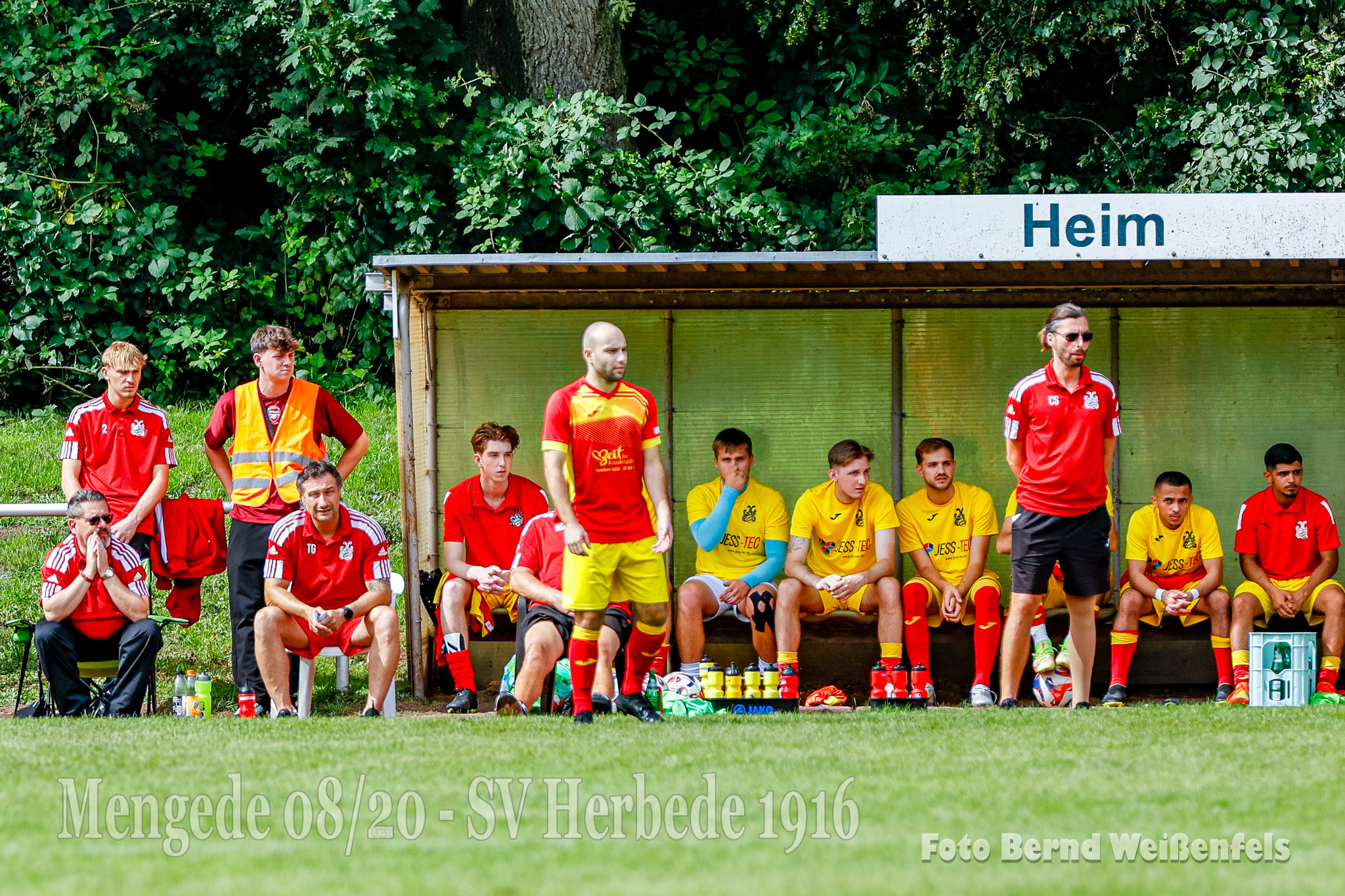 Saison 23/24, Bezirksliga Staffel 10.- 1. Spieltag und wir empfangen im Volksgarten die Elf von SV Herbede. Genug mit der Vorbereitung, heute galt es möglichst fit auf den Punkt zu sein. Unser Trainerteam geht mit einem stark verjüngten Kader in die neue Saison. Am heutigen Tag ist der Kader ziemlich komplett, es fehlen aktuell noch Yazan Alabar, Ritchie Kuck, Ozan Bektas (Urlaub) sowie die leider noch verletzten Fabian Ostermann und Rocco Dieckmann. Auch der frisch vermählte Mattes Schmidt war heute mit an Bord, trotz seiner Hochzeit letzten Freitag liess er es sich nicht nehmen, und um es vorweg zu nehmen, er lieferte eine starke Partie ab. Auch wollen wir nachträglich unseren Coach Christoph Schulz und seiner Ehefrau Gratulieren. Alles Gute für Ihre gemeinsame Zukunft!! Auf gehts, Anpfiff des Spiels! Die erste gute Torchance gab es in Spielminute 12. als Massimo Weil nach einer schönen Aktion aus halblinker Position aus 20 Meter zum Abschluss kommt, leider klatscht sein Schuss nur gegen den Pfosten, und auch den Abpraller konnte Lucas K. (Kiki) nicht im Tor unterbringen, er war vermutlich auch etwas überrascht und traf die Pocke nicht optimal und so ging der Nachschuss übers Tor.