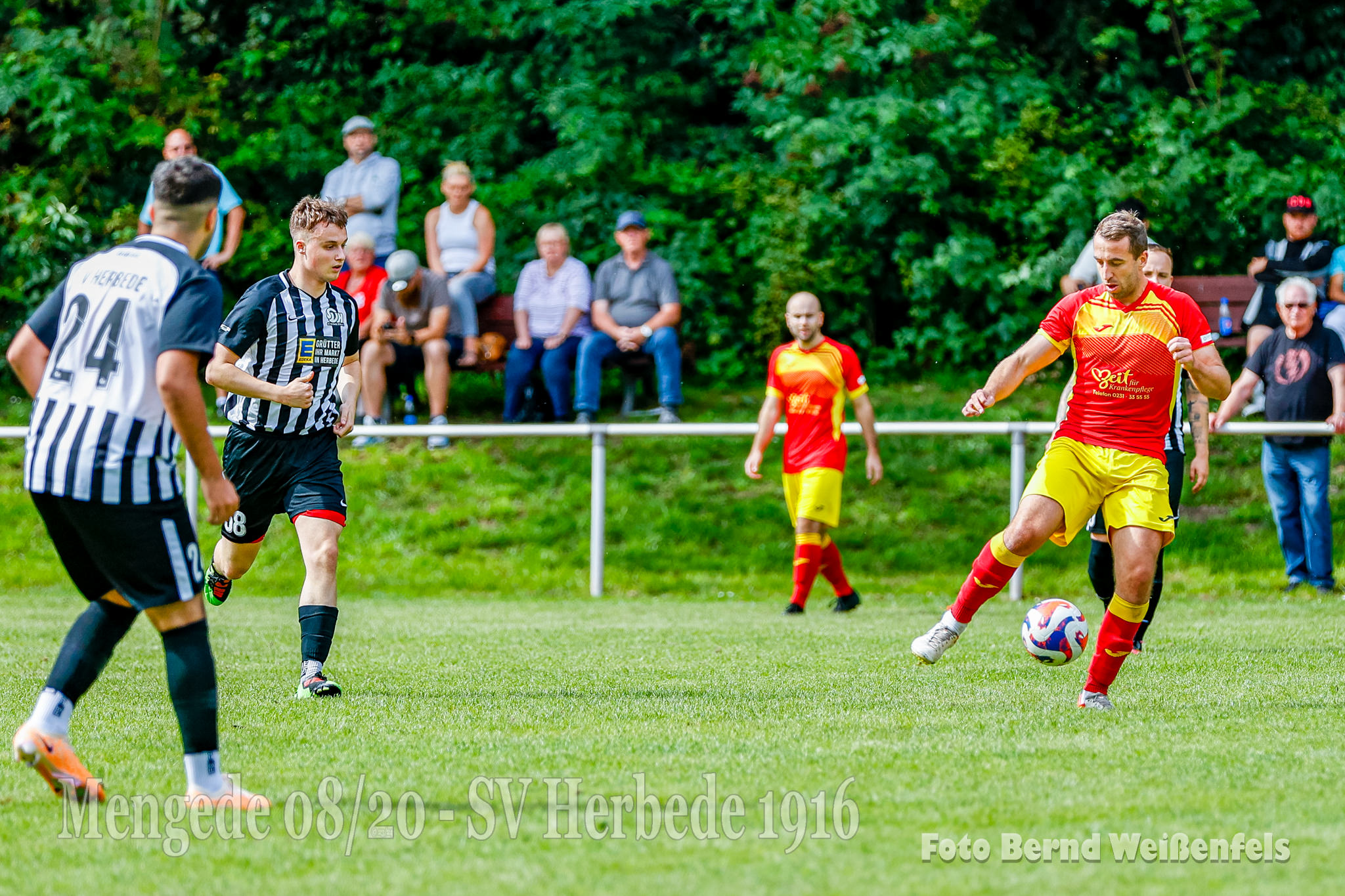 Saison 23/24, Bezirksliga Staffel 10.- 1. Spieltag und wir empfangen im Volksgarten die Elf von SV Herbede. Genug mit der Vorbereitung, heute galt es möglichst fit auf den Punkt zu sein. Unser Trainerteam geht mit einem stark verjüngten Kader in die neue Saison. Am heutigen Tag ist der Kader ziemlich komplett, es fehlen aktuell noch Yazan Alabar, Ritchie Kuck, Ozan Bektas (Urlaub) sowie die leider noch verletzten Fabian Ostermann und Rocco Dieckmann. Auch der frisch vermählte Mattes Schmidt war heute mit an Bord, trotz seiner Hochzeit letzten Freitag liess er es sich nicht nehmen, und um es vorweg zu nehmen, er lieferte eine starke Partie ab. Auch wollen wir nachträglich unseren Coach Christoph Schulz und seiner Ehefrau Gratulieren. Alles Gute für Ihre gemeinsame Zukunft!! Auf gehts, Anpfiff des Spiels! Die erste gute Torchance gab es in Spielminute 12. als Massimo Weil nach einer schönen Aktion aus halblinker Position aus 20 Meter zum Abschluss kommt, leider klatscht sein Schuss nur gegen den Pfosten, und auch den Abpraller konnte Lucas K. (Kiki) nicht im Tor unterbringen, er war vermutlich auch etwas überrascht und traf die Pocke nicht optimal und so ging der Nachschuss übers Tor.