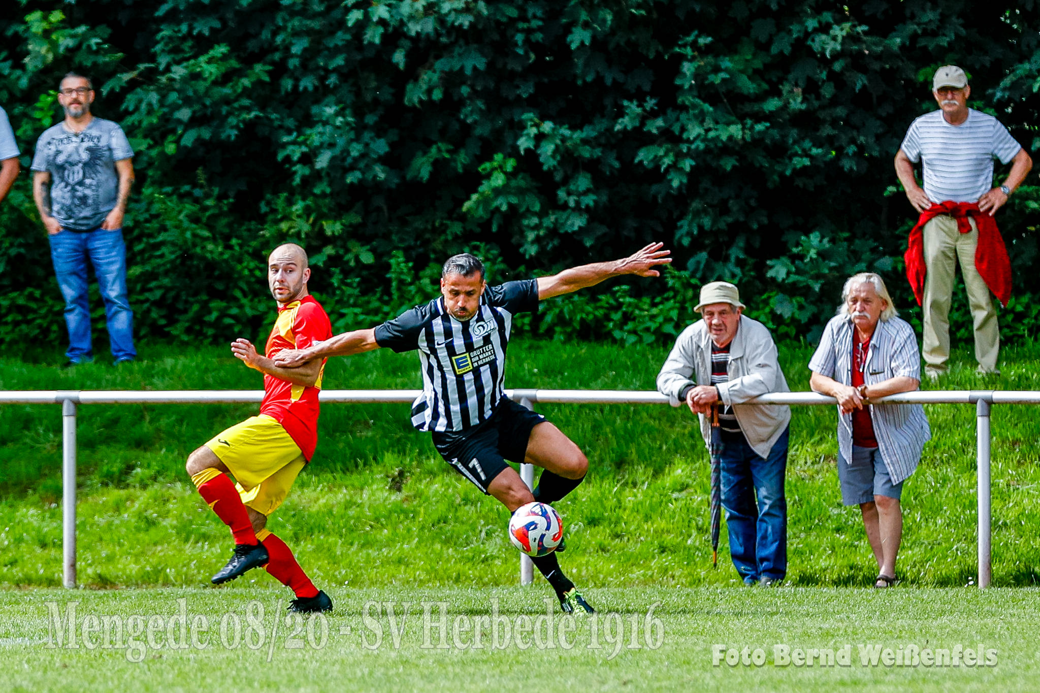 Saison 23/24, Bezirksliga Staffel 10.- 1. Spieltag und wir empfangen im Volksgarten die Elf von SV Herbede. Genug mit der Vorbereitung, heute galt es möglichst fit auf den Punkt zu sein. Unser Trainerteam geht mit einem stark verjüngten Kader in die neue Saison. Am heutigen Tag ist der Kader ziemlich komplett, es fehlen aktuell noch Yazan Alabar, Ritchie Kuck, Ozan Bektas (Urlaub) sowie die leider noch verletzten Fabian Ostermann und Rocco Dieckmann. Auch der frisch vermählte Mattes Schmidt war heute mit an Bord, trotz seiner Hochzeit letzten Freitag liess er es sich nicht nehmen, und um es vorweg zu nehmen, er lieferte eine starke Partie ab. Auch wollen wir nachträglich unseren Coach Christoph Schulz und seiner Ehefrau Gratulieren. Alles Gute für Ihre gemeinsame Zukunft!! Auf gehts, Anpfiff des Spiels! Die erste gute Torchance gab es in Spielminute 12. als Massimo Weil nach einer schönen Aktion aus halblinker Position aus 20 Meter zum Abschluss kommt, leider klatscht sein Schuss nur gegen den Pfosten, und auch den Abpraller konnte Lucas K. (Kiki) nicht im Tor unterbringen, er war vermutlich auch etwas überrascht und traf die Pocke nicht optimal und so ging der Nachschuss übers Tor.