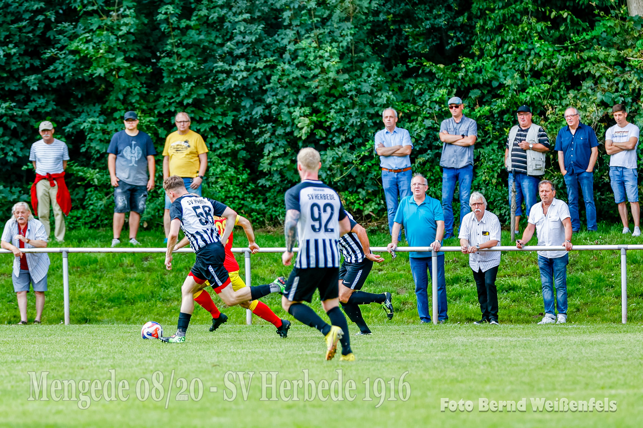 Saison 23/24, Bezirksliga Staffel 10.- 1. Spieltag und wir empfangen im Volksgarten die Elf von SV Herbede. Genug mit der Vorbereitung, heute galt es möglichst fit auf den Punkt zu sein. Unser Trainerteam geht mit einem stark verjüngten Kader in die neue Saison. Am heutigen Tag ist der Kader ziemlich komplett, es fehlen aktuell noch Yazan Alabar, Ritchie Kuck, Ozan Bektas (Urlaub) sowie die leider noch verletzten Fabian Ostermann und Rocco Dieckmann. Auch der frisch vermählte Mattes Schmidt war heute mit an Bord, trotz seiner Hochzeit letzten Freitag liess er es sich nicht nehmen, und um es vorweg zu nehmen, er lieferte eine starke Partie ab. Auch wollen wir nachträglich unseren Coach Christoph Schulz und seiner Ehefrau Gratulieren. Alles Gute für Ihre gemeinsame Zukunft!! Auf gehts, Anpfiff des Spiels! Die erste gute Torchance gab es in Spielminute 12. als Massimo Weil nach einer schönen Aktion aus halblinker Position aus 20 Meter zum Abschluss kommt, leider klatscht sein Schuss nur gegen den Pfosten, und auch den Abpraller konnte Lucas K. (Kiki) nicht im Tor unterbringen, er war vermutlich auch etwas überrascht und traf die Pocke nicht optimal und so ging der Nachschuss übers Tor.