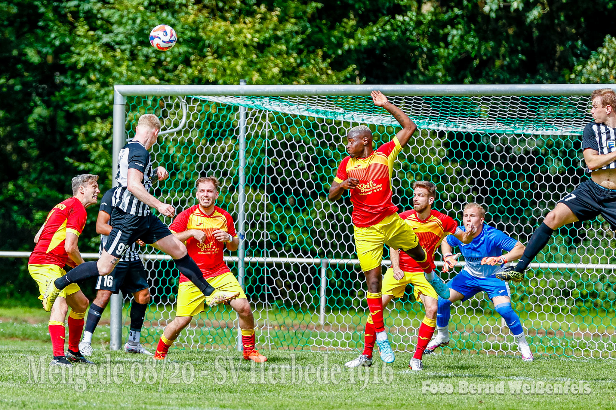 Saison 23/24, Bezirksliga Staffel 10.- 1. Spieltag und wir empfangen im Volksgarten die Elf von SV Herbede. Genug mit der Vorbereitung, heute galt es möglichst fit auf den Punkt zu sein. Unser Trainerteam geht mit einem stark verjüngten Kader in die neue Saison. Am heutigen Tag ist der Kader ziemlich komplett, es fehlen aktuell noch Yazan Alabar, Ritchie Kuck, Ozan Bektas (Urlaub) sowie die leider noch verletzten Fabian Ostermann und Rocco Dieckmann. Auch der frisch vermählte Mattes Schmidt war heute mit an Bord, trotz seiner Hochzeit letzten Freitag liess er es sich nicht nehmen, und um es vorweg zu nehmen, er lieferte eine starke Partie ab. Auch wollen wir nachträglich unseren Coach Christoph Schulz und seiner Ehefrau Gratulieren. Alles Gute für Ihre gemeinsame Zukunft!! Auf gehts, Anpfiff des Spiels! Die erste gute Torchance gab es in Spielminute 12. als Massimo Weil nach einer schönen Aktion aus halblinker Position aus 20 Meter zum Abschluss kommt, leider klatscht sein Schuss nur gegen den Pfosten, und auch den Abpraller konnte Lucas K. (Kiki) nicht im Tor unterbringen, er war vermutlich auch etwas überrascht und traf die Pocke nicht optimal und so ging der Nachschuss übers Tor.