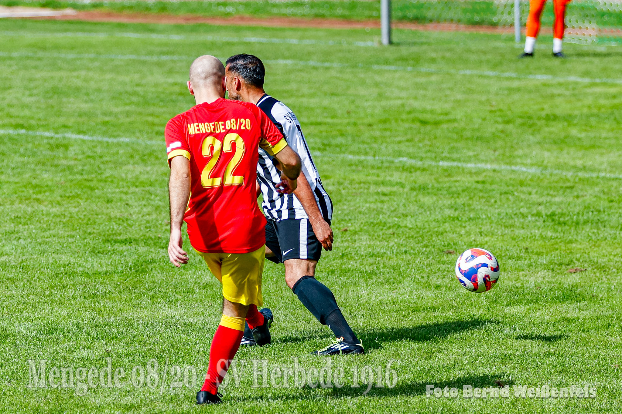 Saison 23/24, Bezirksliga Staffel 10.- 1. Spieltag und wir empfangen im Volksgarten die Elf von SV Herbede. Genug mit der Vorbereitung, heute galt es möglichst fit auf den Punkt zu sein. Unser Trainerteam geht mit einem stark verjüngten Kader in die neue Saison. Am heutigen Tag ist der Kader ziemlich komplett, es fehlen aktuell noch Yazan Alabar, Ritchie Kuck, Ozan Bektas (Urlaub) sowie die leider noch verletzten Fabian Ostermann und Rocco Dieckmann. Auch der frisch vermählte Mattes Schmidt war heute mit an Bord, trotz seiner Hochzeit letzten Freitag liess er es sich nicht nehmen, und um es vorweg zu nehmen, er lieferte eine starke Partie ab. Auch wollen wir nachträglich unseren Coach Christoph Schulz und seiner Ehefrau Gratulieren. Alles Gute für Ihre gemeinsame Zukunft!! Auf gehts, Anpfiff des Spiels! Die erste gute Torchance gab es in Spielminute 12. als Massimo Weil nach einer schönen Aktion aus halblinker Position aus 20 Meter zum Abschluss kommt, leider klatscht sein Schuss nur gegen den Pfosten, und auch den Abpraller konnte Lucas K. (Kiki) nicht im Tor unterbringen, er war vermutlich auch etwas überrascht und traf die Pocke nicht optimal und so ging der Nachschuss übers Tor.