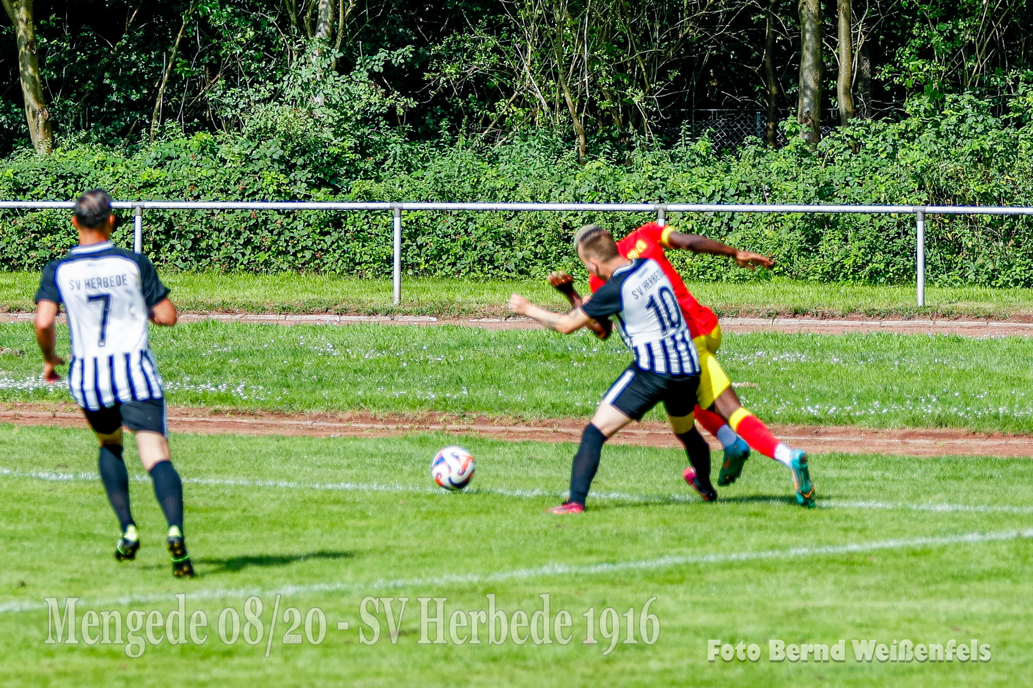 Saison 23/24, Bezirksliga Staffel 10.- 1. Spieltag und wir empfangen im Volksgarten die Elf von SV Herbede. Genug mit der Vorbereitung, heute galt es möglichst fit auf den Punkt zu sein. Unser Trainerteam geht mit einem stark verjüngten Kader in die neue Saison. Am heutigen Tag ist der Kader ziemlich komplett, es fehlen aktuell noch Yazan Alabar, Ritchie Kuck, Ozan Bektas (Urlaub) sowie die leider noch verletzten Fabian Ostermann und Rocco Dieckmann. Auch der frisch vermählte Mattes Schmidt war heute mit an Bord, trotz seiner Hochzeit letzten Freitag liess er es sich nicht nehmen, und um es vorweg zu nehmen, er lieferte eine starke Partie ab. Auch wollen wir nachträglich unseren Coach Christoph Schulz und seiner Ehefrau Gratulieren. Alles Gute für Ihre gemeinsame Zukunft!! Auf gehts, Anpfiff des Spiels! Die erste gute Torchance gab es in Spielminute 12. als Massimo Weil nach einer schönen Aktion aus halblinker Position aus 20 Meter zum Abschluss kommt, leider klatscht sein Schuss nur gegen den Pfosten, und auch den Abpraller konnte Lucas K. (Kiki) nicht im Tor unterbringen, er war vermutlich auch etwas überrascht und traf die Pocke nicht optimal und so ging der Nachschuss übers Tor.