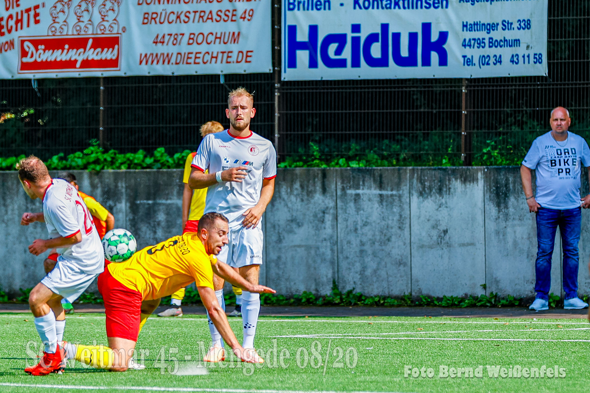 2. Spieltag  und wir sind zu Gast beim SC Weitmar 45. Gegenüber der Vorwoche gab es 2 Veränderungen bezüglich der Startelf.- Für die angeschlagenen / verletzten Spieler Kosta und Massimo Weil begannen Marvin Lehn (Abwehrkette) und Ahmad Alabar (Mittelfeld). Anpfiff des Spiels: Eigentlich kam unsere Mannschaft ganz gut in Spiel. Bereits in der 4. Spielminute wurde nach einem Eckball der Kopfball von Kiki von einem Feldspieler kurz vor der Torlinie geklärt. Weitere Chancen folgten, es gab u.a. Abschlüsse durch Giacomo und Andi Lüder.