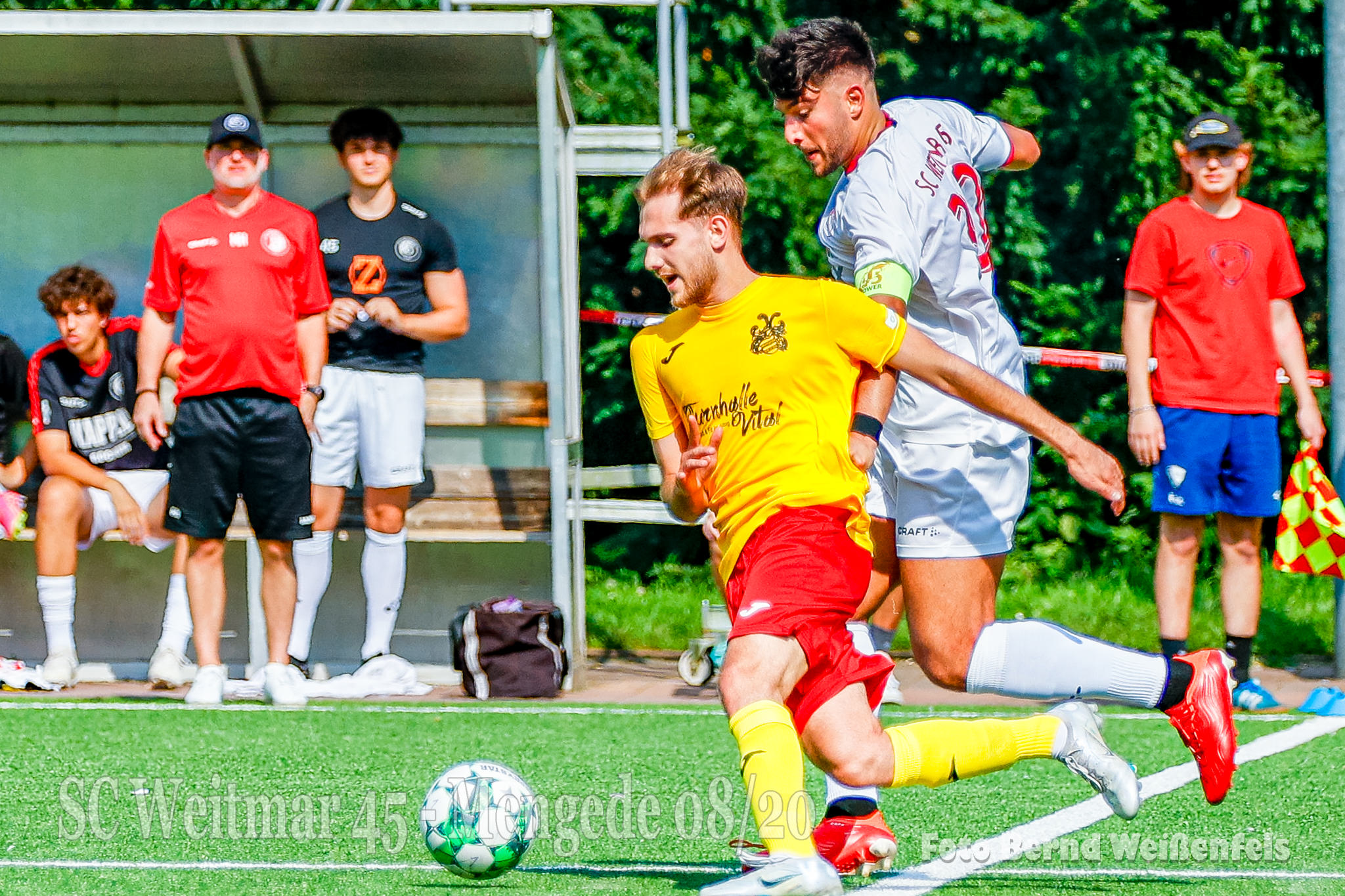 2. Spieltag  und wir sind zu Gast beim SC Weitmar 45. Gegenüber der Vorwoche gab es 2 Veränderungen bezüglich der Startelf.- Für die angeschlagenen / verletzten Spieler Kosta und Massimo Weil begannen Marvin Lehn (Abwehrkette) und Ahmad Alabar (Mittelfeld). Anpfiff des Spiels: Eigentlich kam unsere Mannschaft ganz gut in Spiel. Bereits in der 4. Spielminute wurde nach einem Eckball der Kopfball von Kiki von einem Feldspieler kurz vor der Torlinie geklärt. Weitere Chancen folgten, es gab u.a. Abschlüsse durch Giacomo und Andi Lüder.
