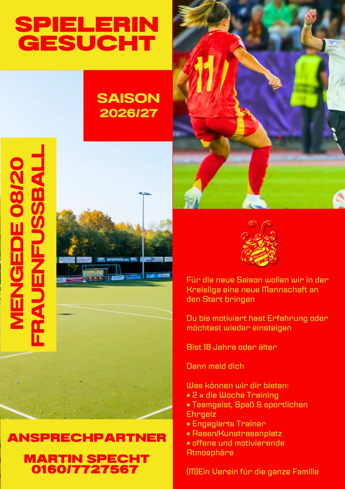 Ansprechpartner: Martin Specht 0160 7727567 oder ✉ m.specht@mengede-08-20.de
